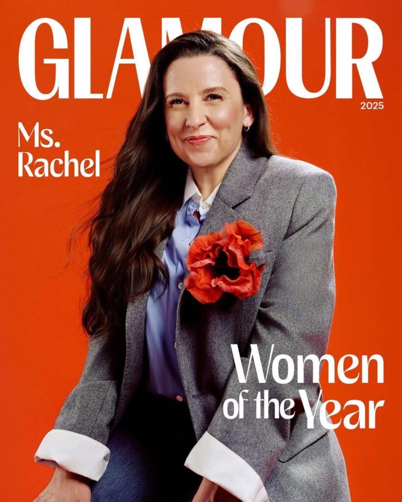 - GLAMOUR Magazine named Ms. Rachel as one of their “Women of the Year,” trading in their signature pink for an orange backdrop. (Glamour Magazine, 2025)