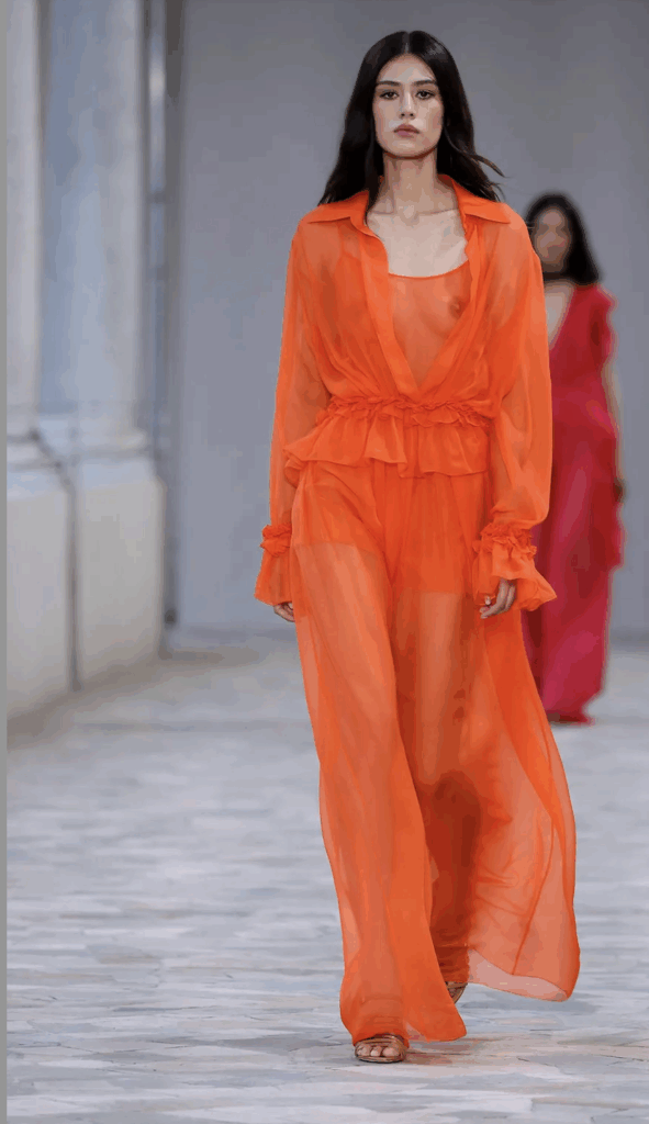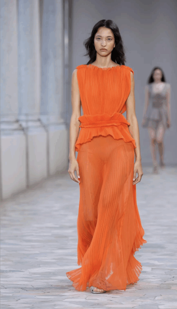 If 2024 hinted at orange becoming a trend and 2025 lifestyle moments mainstreamed it, the 2025 fashion weeks cemented its authority. Especially the SS26 shows in Milan.